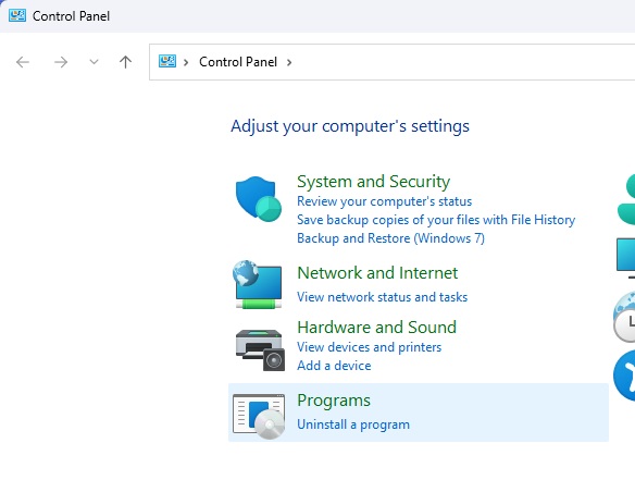 2. In Control Panel, select Programs, and there select Uninstall a program.