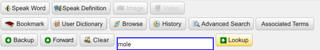 After you have entered a word in the text entry field, click on the Lookup button to display the definition of the word. Clicking on the Lookup button also adds the entry word to the history for future reference. |