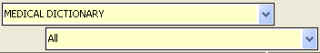 ACCESSING DICTIONARIES AND SUBSECTIONS Your dictionary window contains two selection boxes, the dictionary selection box and the the subsection selection box. They are shown below with the dictionary selection box on top.