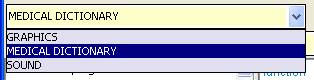 The Inductel MicroLibrary and the Inductel Scientific and Technical Dictionaries contain multiple dictionaries that you may access using the dictionary selection box. Other Inductel dictionary programs, such as the Medical Dictionary, allow you to access other databases such as graphics and sound using the dictionary selection box.