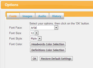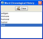 Clicking on the History button will bring up the Word Lookup History dialog box. The history is in order with the most recent entry at the bottom of the list.