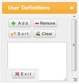 Hit the User Dictionary button when you wish to either work with your existing user dictionary or create new user dictionary. With User Dictionary you may perform the following functions: add entries, remove entries, sort entries, and clear all entries.