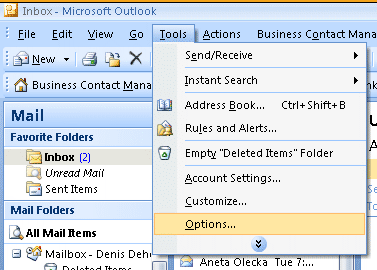 In the "Tools" menu, click on "Options..."
