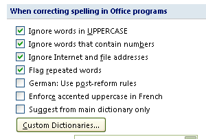 Windows 7 or Windows Vista: In Custom Dictionaries, click the "Add" button, browse to the file path "C:\ProgramData\Inductel\KAS\spellers\Word2007" and add your new custom dictionary. Note: the ProgramData folder may be hidden, so you may have to tell Windows to display hidden files and folders.