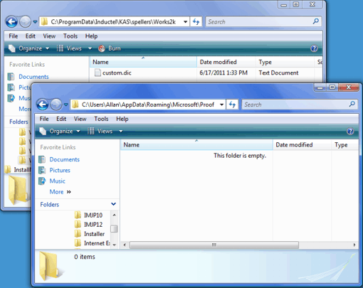 The "Works2k" folder is found at C:\Documents and Settings\All Users\Inductel\KAS\spellers\Works2k if your computer runs Windows XP.