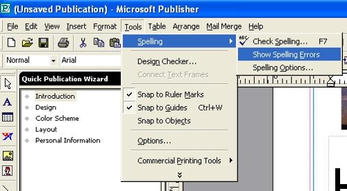 Publisher is now ready to spell check using your new Inductel spelling dictionary.