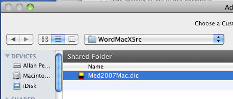 Above, we chose  "Med2007Mac.dic."      (NOTE: Your Inductel custom dictionary could be named “Combo2007.dic” depending on which Inductel product you have.)