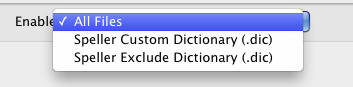 In "Add Dictionary", "Enable: All Files."