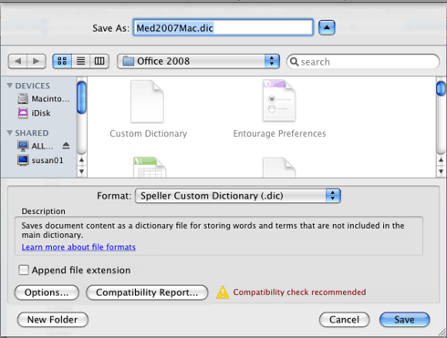 If your new Inductel custom dictionary still will not retain its checkmark, then you may have to convert its file type to an acceptable file type.  To do that, perform the following steps: