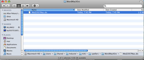 Open your new Inductel custom dictionary file using Microsoft Word.  Your Inductel custom dictionary will be located on your computer at Macintosh HD\Users\Shared\Inductel\KAS\spellers\WordMacXSrc.