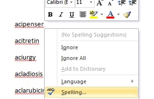After adding your new custom dictionary, please put a check by each one you wish to have active during your spell check. Verify that your new speller is working. Key in some test words. Medical speller key in: abrachia, Celebrex, and sternocleidomastoid. If your new speller is working it will pass those words as being correctly spelled.