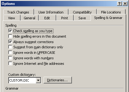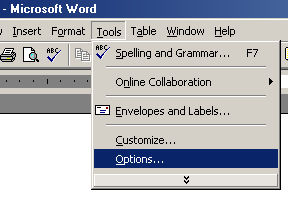 IN MICROSOFT WORD 2000/ 2002/2003/XP Open a Word document that you wish to spell check. Then, select "Tools", and "Options."