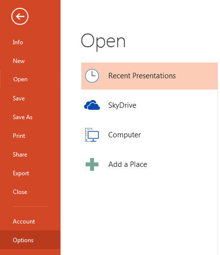 As shown here, run Microsoft PowerPoint 2013 and open a document that you wish to spell check.