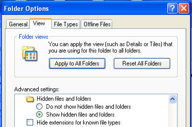 3. In Folder Options, select the View tab. In