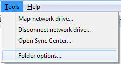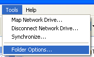 2. In the Tools menu, select Folder Options. Note: If you can't see the Tools menu, then it may be hidden. To make it visible, press the Alt key. (See item number 4 below.)