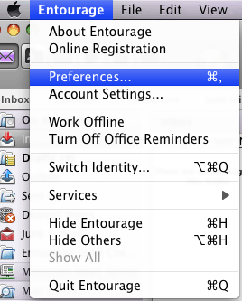 After restarting your computer, open an Entourage message. In the Entourage menu, click on "Preferences."