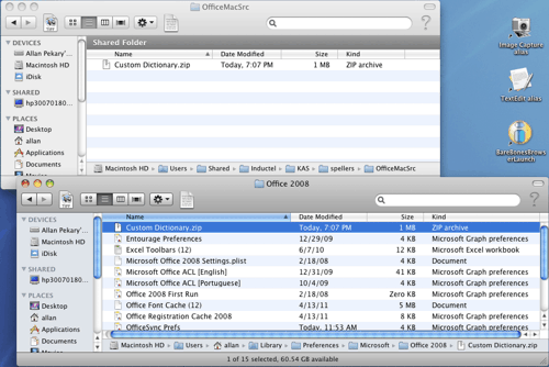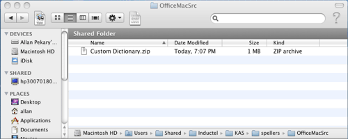 MICROSOFT ENTOURAGE 2008 Copy your new Inductel speller "Custom Dictionary.zip", from the "OfficeMacSrc" folder to the "Office 2008" folder.