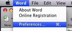 In the Word menu, select  "Word" then "Preferences."