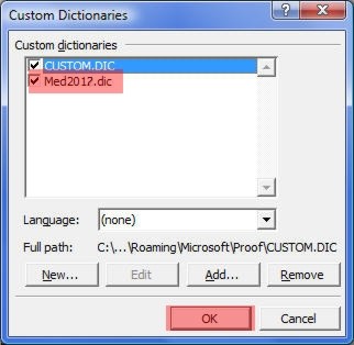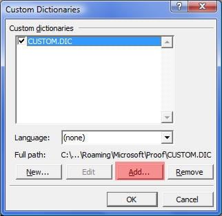 4. Click on the "Add" button. You are going to add a new custom dictionary.