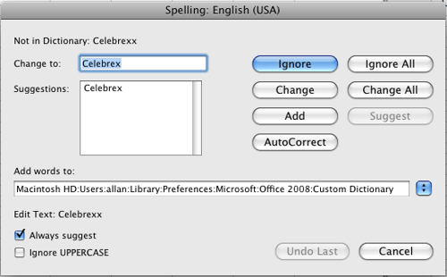 Sci & Tech spell checker key in: abrachia, Celebrex, and sternocleidomastoid. If your new speller is working it will pass those words as being correctly spelled.