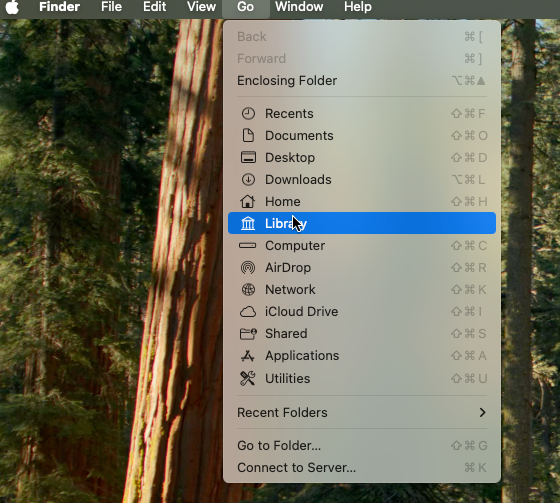 1. Destination folder: Open your Finder's Go menu, then hold down your keyboard's "option" key to make the "Library" link visible. (Your "option" key will usually be located in the lower left area of your keyboard between the control key and the Command key.)