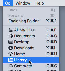 2. On the menu bar, Hold open the Go menu, hit your Option key to reveal the Library entry, and go to the Library folder.