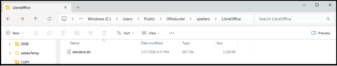 2. SOURCE FOLDER: On your PC C:\Users\Public\01Inductel\spellers\LibreOffice