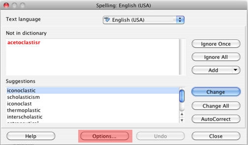 In "Spelling", click on "Options."