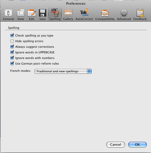 4. In "Preferences", enable both "Check spelling as you type" and "Always suggest corrections". Then hit OK.