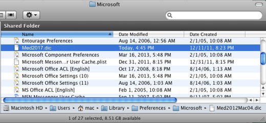2. Copy "Med2017.dic" to the "Microsoft" folder in your account.
