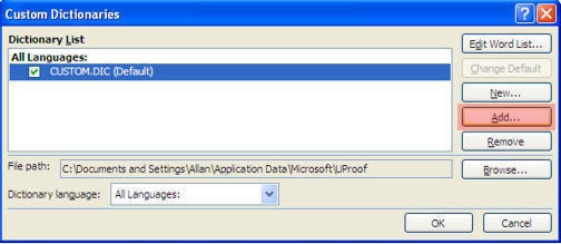 3. Click on the "Add" button. You are going to add a new custom dictionary.