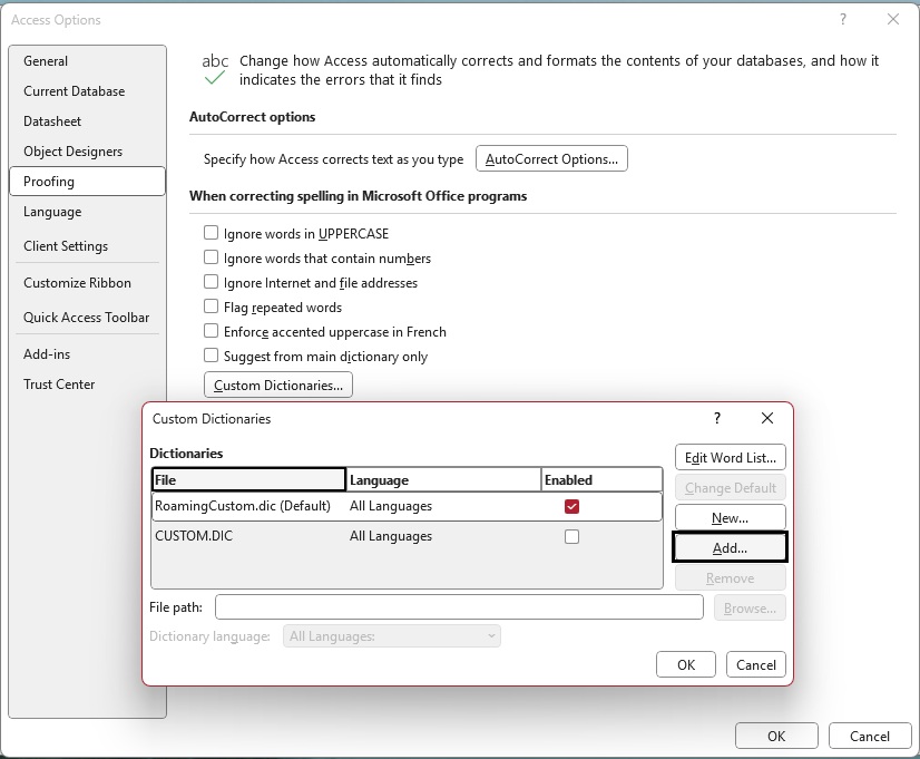 These instructions will show you how to add your Inductel custom dictionary to your Microsoft Access.