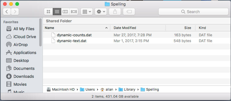 3. In Library, open the Spelling folder.
