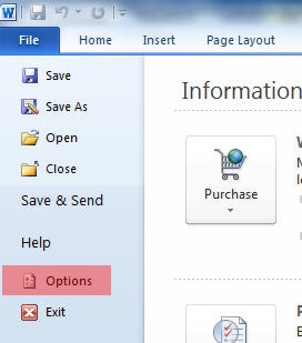 1. Open a Microsoft Word document now. Select the "File" tab. Then select "Options."